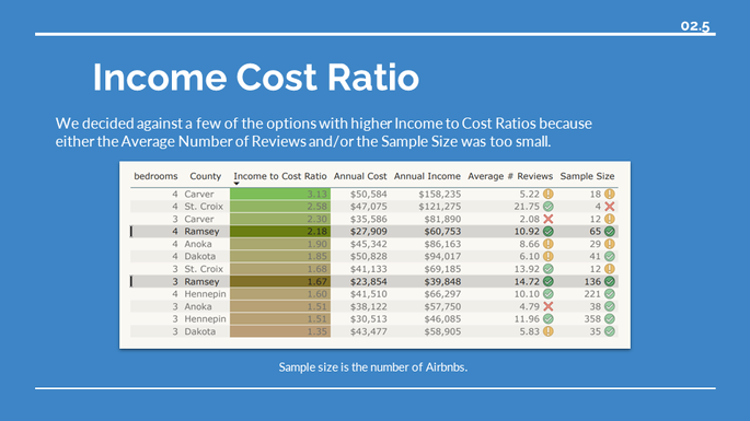 This was a group presentation for General Assembly. We examined Air BnB data from the Twin Cities area, as well as property listings on Zillow to determine what property would be the optimal purchase for a vacation home.